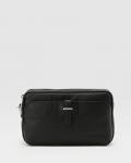 Небольшая сумка из натуральной кожи в черном цвете от Principe di Bologna. Сумка закрывается на молнию, внутри текстильная подкладка и карман на молнии. Небольшие вещи или документы можно разместить в дополнительных карманах на передней и задней стороне сумки. Аксессуар можно носить на руке, используя кожаный ремешок на карабине.