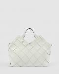 Сумка Principe di Bologna из натуральной кожи в белом цвете. Сумка прекрасно впишется как в повседневные образы, так и в деловой стиль для офиса. Сумка выполнена из широких полос натуральной кожи, с кожаными ручками и дополнительным ремнём на плечо. Внутреннее отделение закрывается на молнию. Внутри текстильная подкладка и карман на молнии.