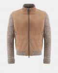 Куртка-бомбер Principe di Bologna выполнена в комбинированном дизайне из натуральной кожи с рукавами из плотного текстиля. Манжеты, воротник-стойка и низ изделия дополнены эластичной резинкой, за счет чего можно с легкостью регулировать посадку. Застегивается на молнию с двойным бегунком. По бокам расположены вместительные карманы.