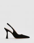 Чёрные туфли Principe di Bologna с открытой пяткой дополнят женственные образы. Модель выполнена из замши, на каблуке высотой 95 мм. Внутри подклад и стелька из натуральной кожи. Стопу фиксирует ремешок на пятке с регулируемой застёжкой. Зауженный мыс, фактурный материал и необычная форма каблука добавляют элегантности в любых сочетаниях – с брюками, юбками и платьями.