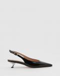 Чёрные туфли с зауженным мысом и открытой пяткой Principe di Bologna помогут создать элегантный образ на каждый день или для особого случая. Модель выполнена из натуральной лакированной кожи, на каблуке kitten heel высотой 30 мм. Внутри подклад и стелька также из кожи. Стопу фиксирует ремешок на пятке с регулируемой застежкой. Туфли можно стилизовать с юбками и платьями, а также с брюками или джинсами свободного кроя.